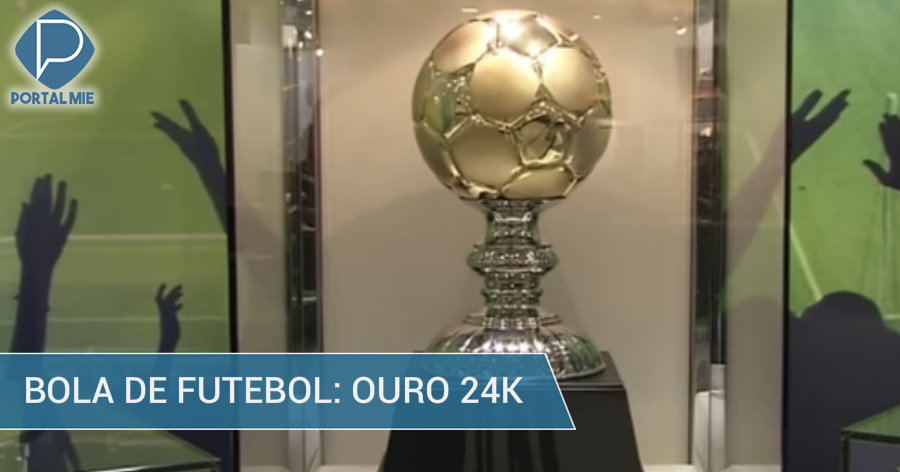 A grande, também de ouro 24K, tem brilho do liso contrastando com o trabalhado fosco. A bola pesa 3Kg distribuídos nos 22cm de diâmetro. Ou seja, tem o tamanho de uma oficial que fica entre 21,67 e 22,29cm.