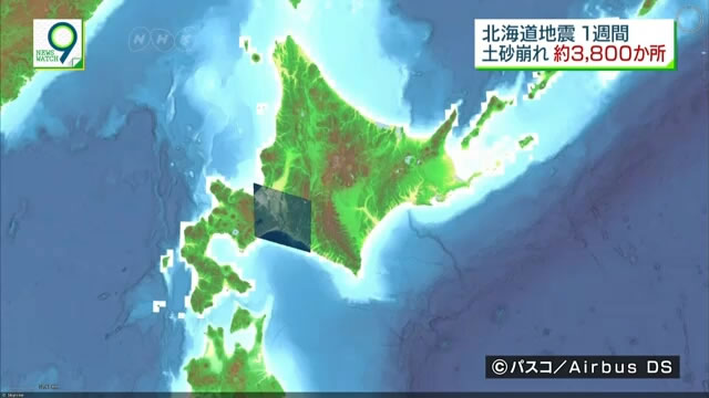 A pesquisa de uma empresa mostrou que cerca de 3.800 deslizamentos de terra foram confirmados perto do epicentro do terremoto de magnitude 6,7 que sacudiu Hokkaido em 6 de setembro. A intensidade na escala sísmica japonesa atingiu o nível máximo, 7.