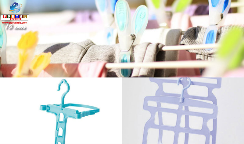 Secar roupas nos cabides é um hábito do Japão. Se tiver um cabide para os cabides, economiza-se espaço no varal. Esse cabideiro para cabides tem sido altamente comentado entre as donas de casa. É da rede Daiso.