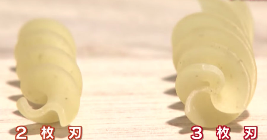 Em um dos tipos de macaroni, parecido com o fusilli ou parafuso, aumentou uma asa. Ou seja, antes eram 2 e ao aumentar para 3, com a mesma pasta a área da massa têm melhor contato com a água fervente.