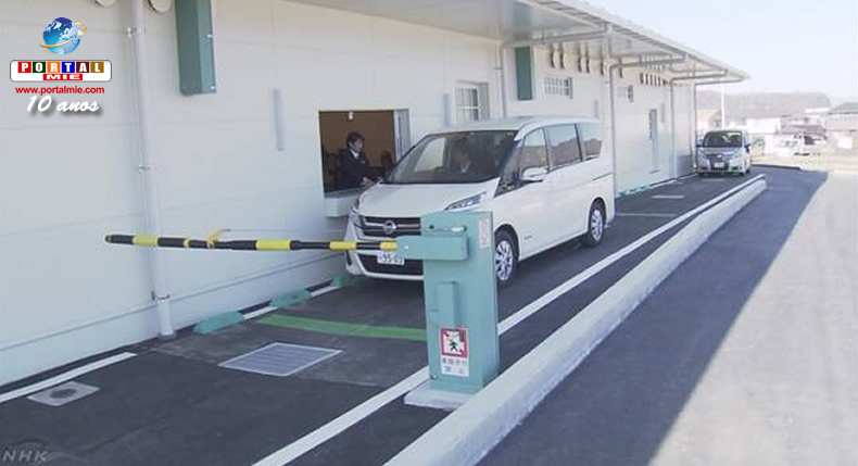 Demonstração do serviço que permitirá, principalmente a idosos e pessoas com deficiência, a dizer adeus a seus entes queridos sem ter que sair do carro onde estão (NHK/reprodução)