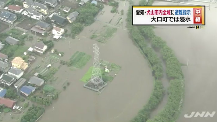 O ar úmido e a frente sazonal provocaram chuvas fortes e históricas em várias cidades das províncias de Aichi e Gifu. Em uma hora o índice pluviométrico registrado de manhã em Inuyama e Komaki foi de 120mm, segundo o Observatório de Meteorologia de Nagoia.