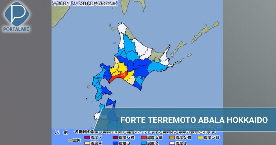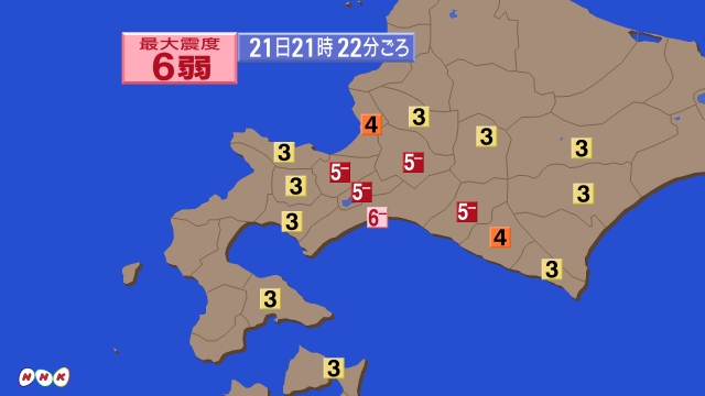 Às 21h22 de quinta-feira (21) ocorreu um abalo sísmico de intensidade 6 (fraca) na região de Iburi (Hokkaido), com epicentro em Atsuma-cho.