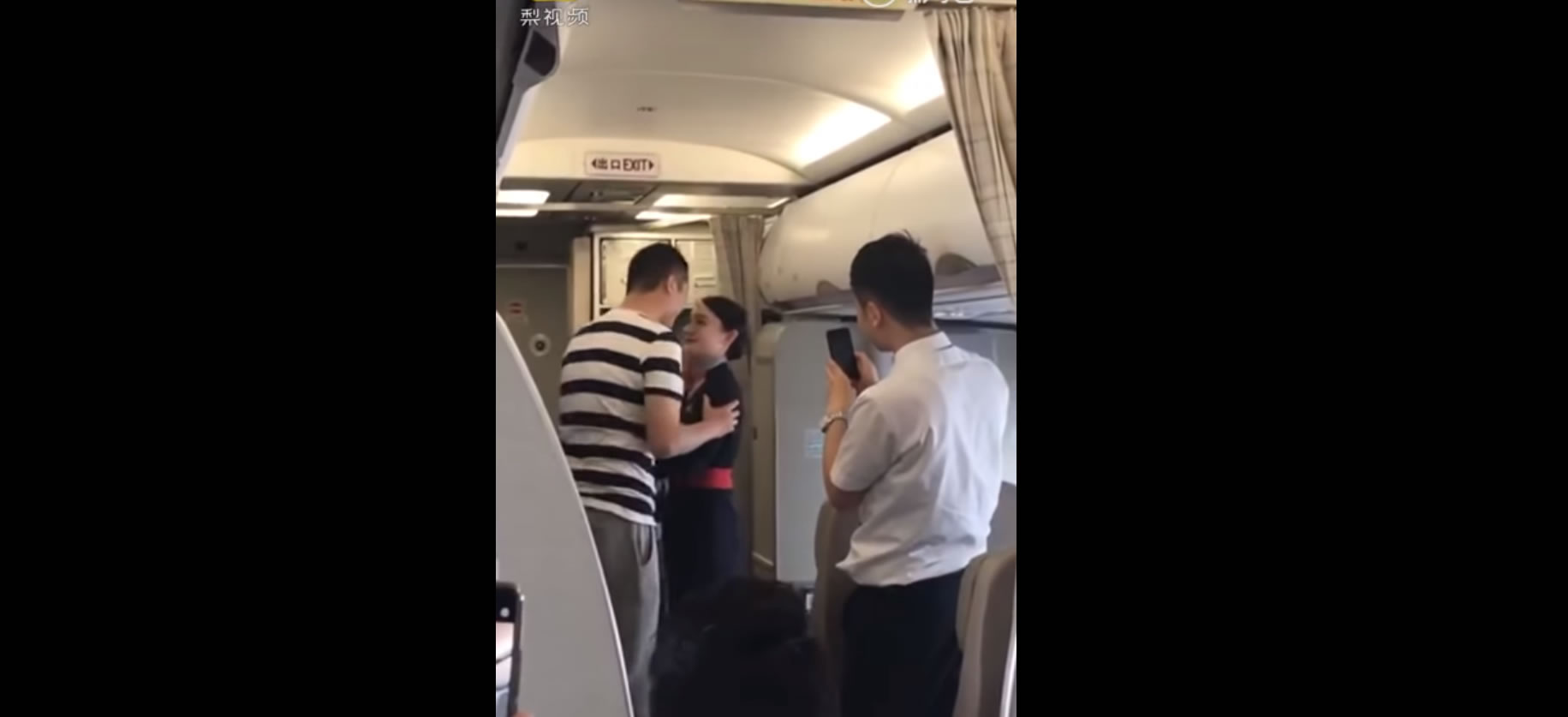 Namorado de comissária de bordo a pede em casamento em pleno voo (YouTube/微博视频精选)