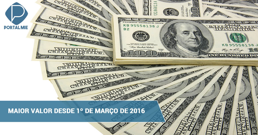O dólar comercial fechou mais um pregão em alta na quinta-feira (7), com valorização de 2,3%, cotado a R$ 3,926. Trata-se do maior valor desde o dia 1º de março de 2016, quando a moeda fechou o dia vendida a R$ 3,941.