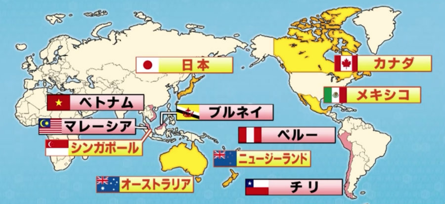 Os países participantes são Japão, Austrália, Brunei, Canadá, Chile, Malásia, México, Nova Zelândia, Peru, Cingapura e Vietnã.