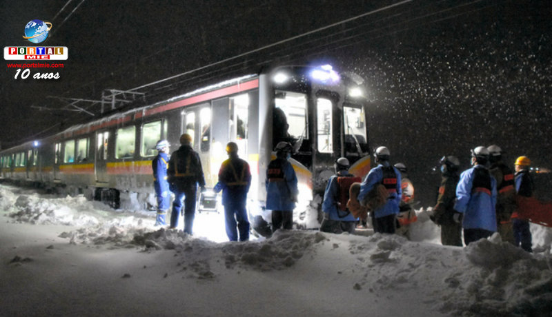 A JR não permitiu que os passageiros saíssem dos vagões por avaliar que “é perigoso pois a neve é profunda”.