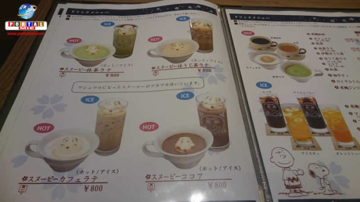 O café tem muitos pratos japoneses populares inspirados na turma do Snoopy: