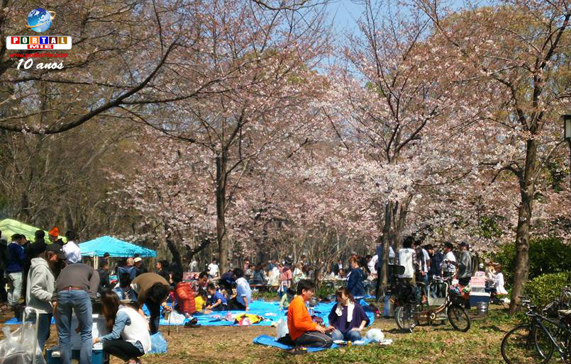 Há várias barracas de comidas e bebidas para curtir o hanami.