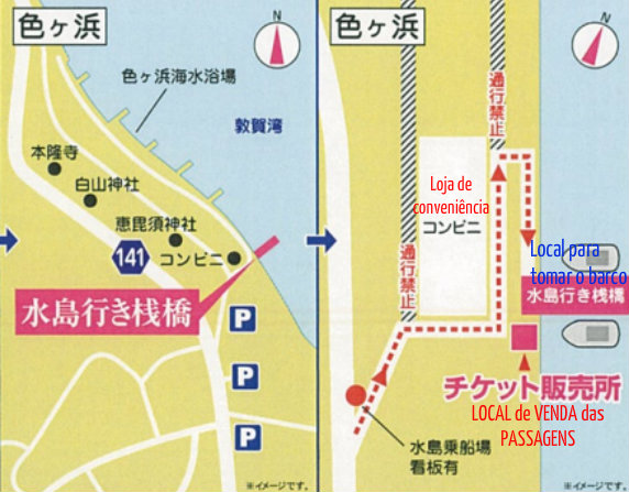 - Ir até Irogahama 色ヶ浜 e deixar o carro no estacionamento (¥400/dia). Toque aqui para abrir o mapa