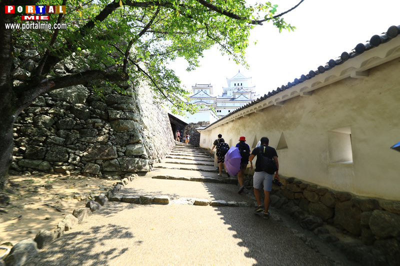 A aproximação como um labirinto, do Portão Hishi até a fortaleza principal, leva ao longo de caminhos murados e através de múltiplos portões e muralhas externas que tinham o propósito de retardar e expor as forças ofensivas.
