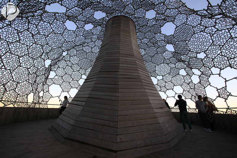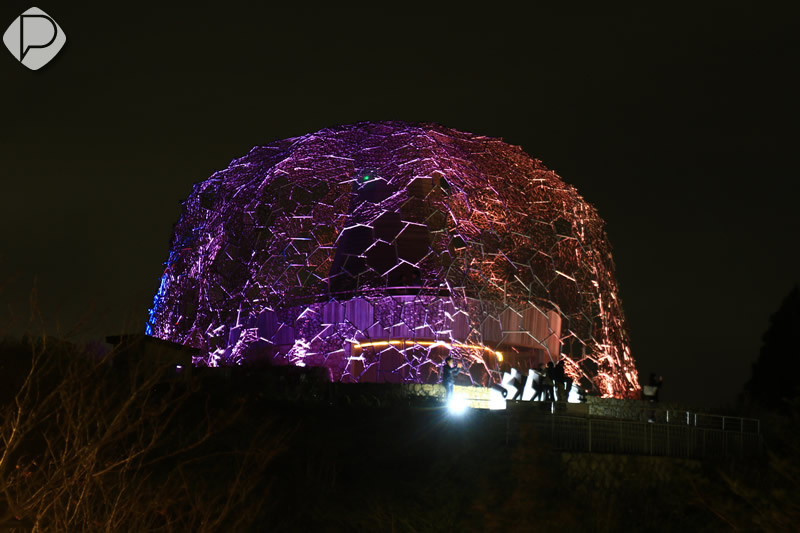 A característica principal desse observatório é um domo entrelaçado de 16 metros de diâmetro que fornece abrigo parcial contra as condições climáticas. À noite ele também é iluminado e a paisagem se transforma completamente.
