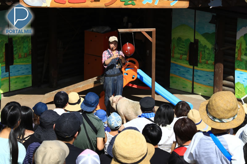 Na parte inicial da fazenda há uma área com palco e arquibancada onde acontece o show de porquinhos, três vezes ao dia.