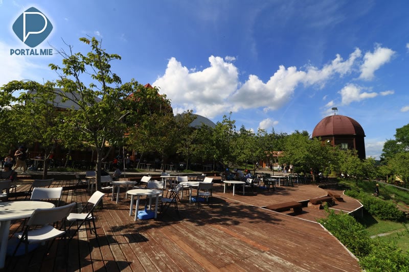 No amplo espaço está a área de restaurantes e de algumas das oficinas para aprender a fazer produtos.