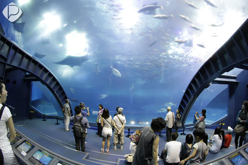 O Churaumi é amplamente considerado o melhor aquário do Japão e fica na cidade de Motobu, província de Okinawa.