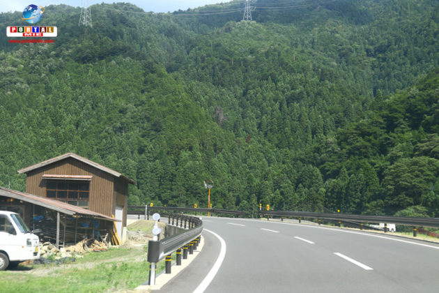 A estrada entre as montanhas até chegar em Kayabuki no Sato