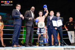 O novo campeão Onishi, junto a Ernesto Hoost e os organizadores