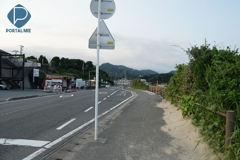 Do lado esquerdo na foto ficam barraquinhas e loja de conveniência, no lado direito já é a praia