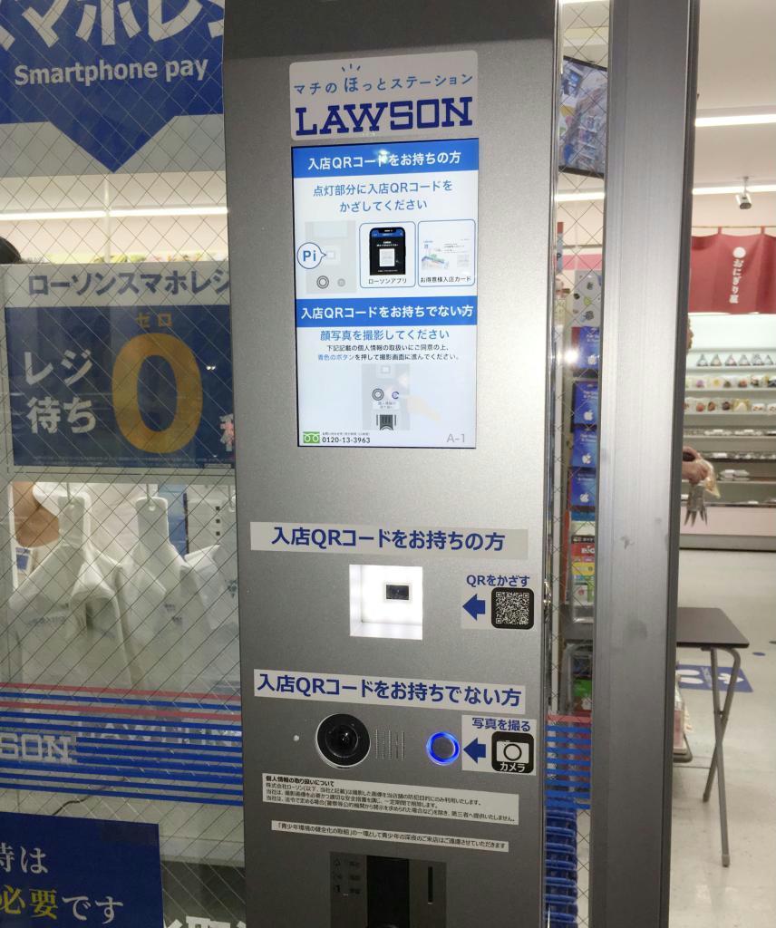 Duas opções para entrar na loja: código QR ou permite fotografar o rosto (Sankei)