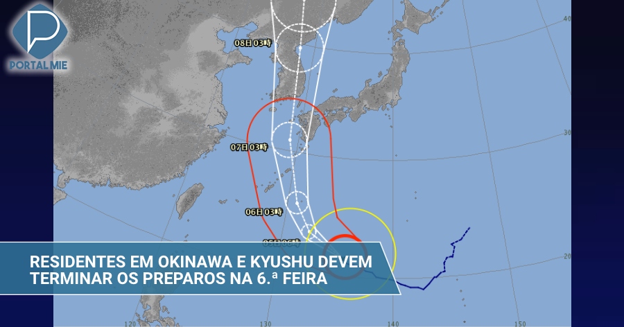 Por volta das 6h de sábado (5) deverá estar a 290 quilômetros da Ilha Daito ou Daitojima (Okinawa). Depois, às 3h de domingo (6) terá ganhado força, entrando na classificação de violento, com 915hPa, a 40 quilômetros de Daitojima. Por isso, a ilha ficará sob essa área de tempestade violenta e a ilha principal de Okinawa sob a área de tempestade muito forte.