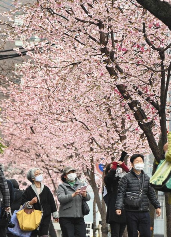 O primeiro lugar em Nagoia (Aichi) a ter cerejeiras floridas já está atraindo pessoas pela beleza. São as das espécies Ookanzakura e um pouco da Kanhizakura, as quais florescem antes da popular Someiyoshino.