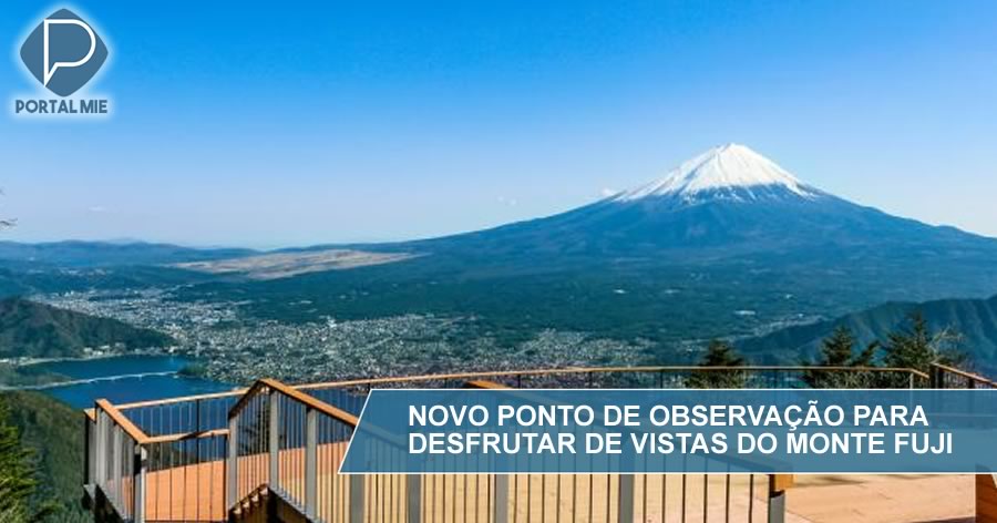 A plataforma de observação Fujiyama Twin Terrace instalada no Shindo-toge pass em Fuefuki (Yamanashi) oferece vistas panorâmicas do Monte Fuji e do Lago Kawaguchi em um dia de sol (city.fuefuki)