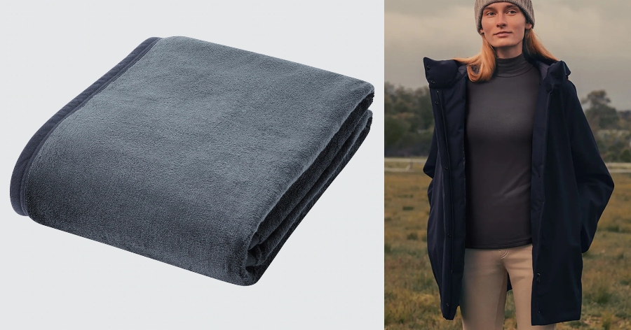 Exemplo de cobertor e roupas com tecnologia HeatTech (HP)
