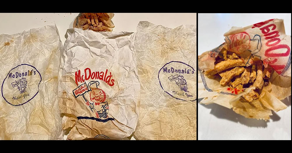 Os logos em particular nas embalagens que Jones encontrou pareciam ser dos primeiros designs dos anos 1950, com o Speedee, o mascote original do McDonald’s antes do Ronald McDonald.