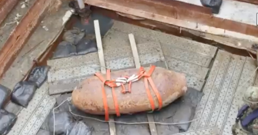 Essa bomba não detonada foi fabricada nos Estados Unidos, de uma tonelada, com 60 centímetros de diâmetro e 1,80 metro de comprimento.