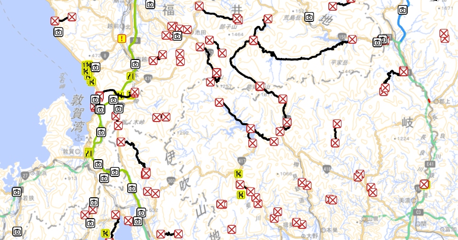 Visualização da situação das rodovias e vias expressas em tempo real como nesse caso entre Shiga e Fukui (Jartic)