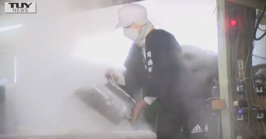 Ela foi entrevistada pela equipe da emissora local, a TUY, cuja matéria foi levada ao ar na quarta-feira (8). Estava transferindo o arroz a uma temperatura próxima de 100ºC para o refrigerador, nas instalações do Dewazakura Sake Brewery, na cidade de Yamagata (província homônima).