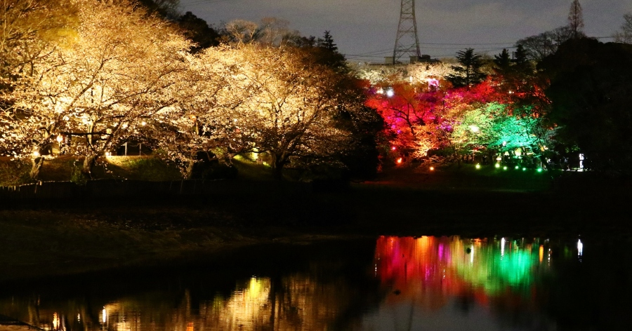 O parque é belo tanto de dia quanto à noite, com a iluminação especial (Tokai Kanko)
