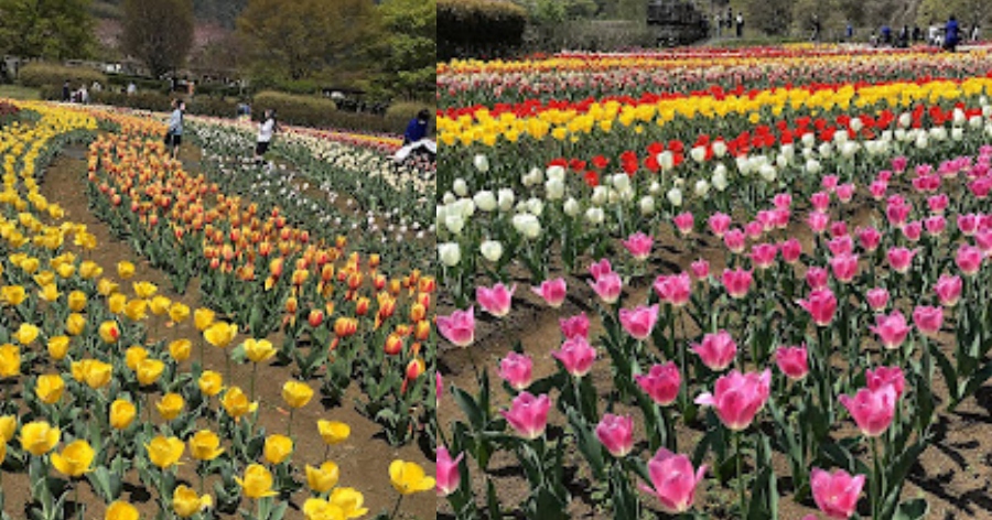 Para quem reside na província de Kanagawa pode apreciar as belas tulipas no Parque Hadano Togawa, pois são 70 mil bulbos plantados, ou seja, cerca de 200 mil em plena floração.