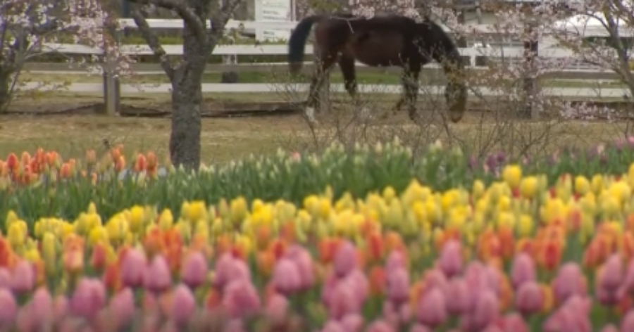 As tulipas do coração desenhado na área ainda não floresceram, até 25/abr (Nagoya TV)