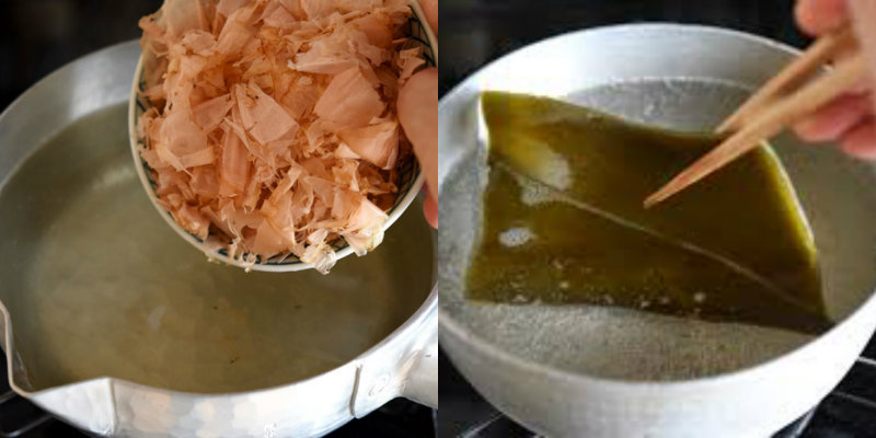 Indispensável para os cozidos e ensopados. Tem duas formas de preparar essa espécie de caldo de forma rápida. Uma delas é colocar 3 a 4 gramas de katsuobushi (鰹節, peixe bonito seco e ralado) de molho em 200 gramas de água. Pode ferver ou levar ao microondas.