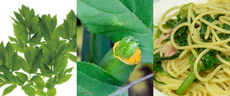 Ashitaba tem incrível poder de vida: do corte logo nascem outras folhas. Pode ser usado para o preparo de vários pratos, inclusive de molho com bacon