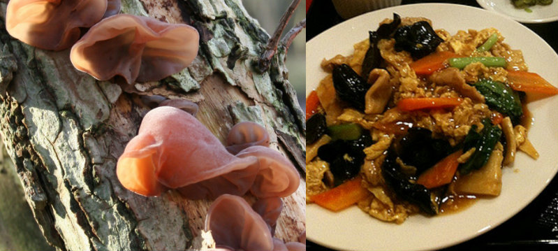 Orelha-de-Judas ou kikurage: indispensável nas culinárias chinesa e japonesa, de cor preta na foto à direita