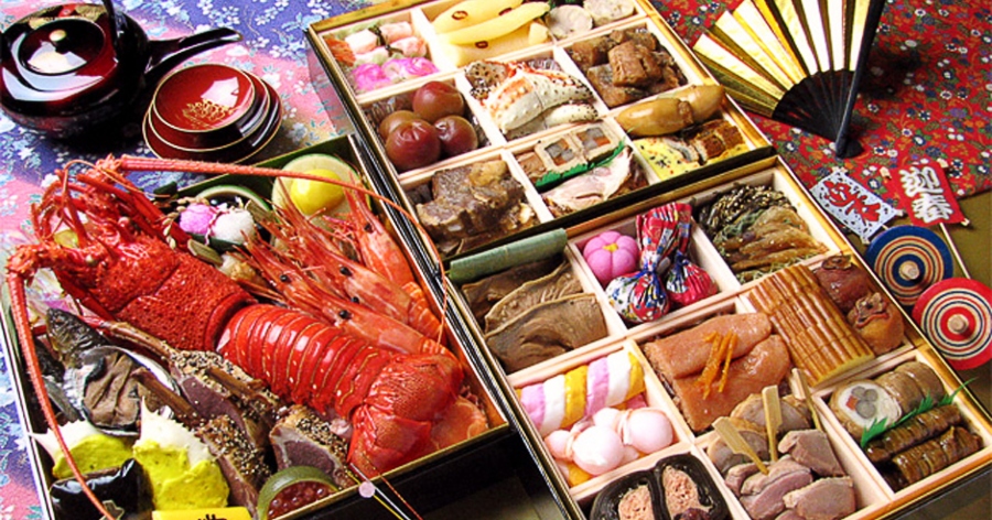 Da mesma forma que no banquete de Ano Novo no Brasil se serve pratos típicos como lentilhas cozidas e assados, no Japão há um universo gastronômico elegante e tradicional chamado de osechi ryouri (御節料理), nos 3 dias primeiros dias do ano.