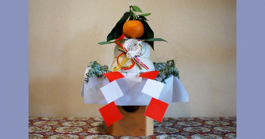 Acreditava-se que o espelho era a moradia dos deuses, então, passou-se a usar o mochi (bolinho de arroz) para expressá-lo.