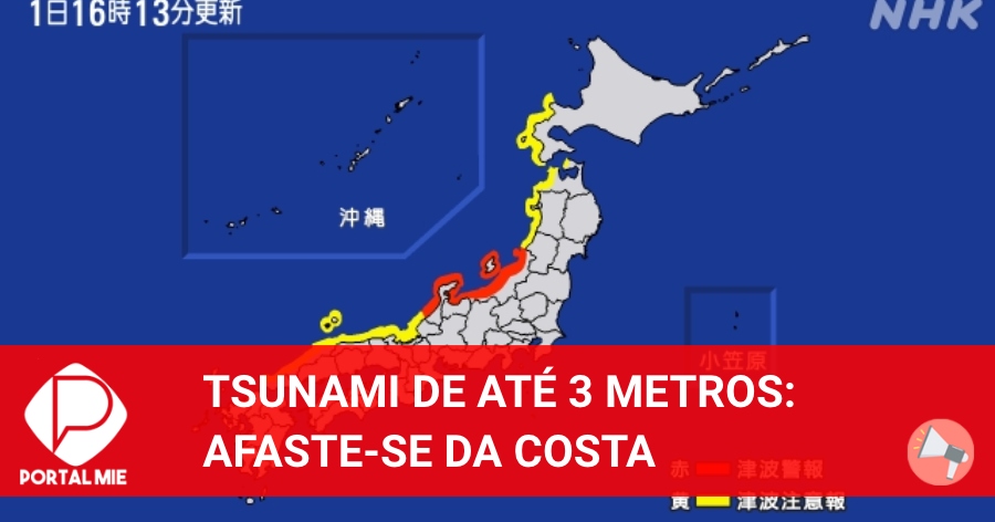 Além disso, há outra preocupação com o tsunami, em praticamente toda a costa do Mar do Japão. Por isso, quem mora perto do mar, deve fugir imediatamente para um local elevado, se precavendo do frio.