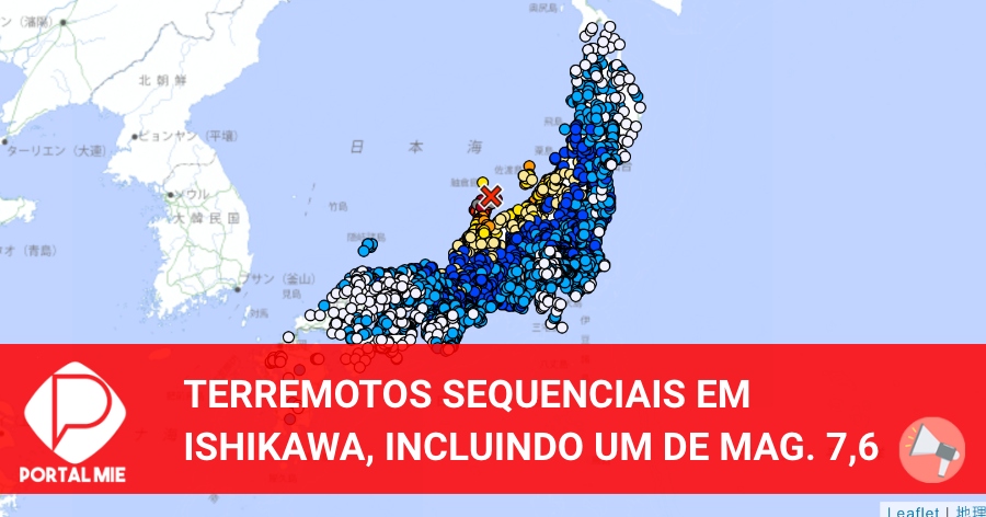 O terremoto mais forte do primeiro dia do ano de 2024, às 16h10, surpreendeu a população de ampla área, pois foi de magnitude 7,6 e intensidade máxima de 7, com epicentro em Noto, a uma profundidade rasa, por isso, gerou o tsunami de até 5 metros de altura, na costa do Mar do Japão.