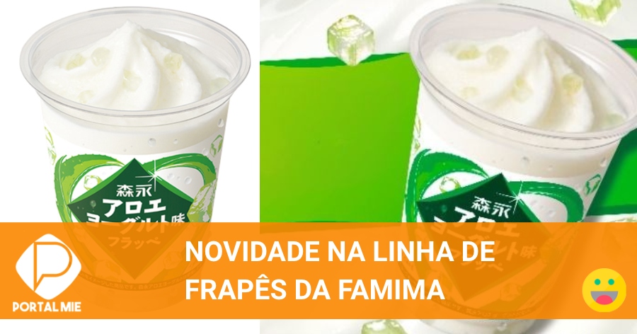 O novo produto faz parte da série de frapês Famima Café, preparado na máquina especial da rede. São duas camadas de sorvete e creme com o tradicional sabor do iogurte com os pedacinhos da aloe vera.