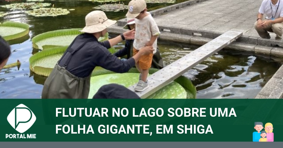 - Os funcionários ajudam a colocar a criança sobre a folha gigante
