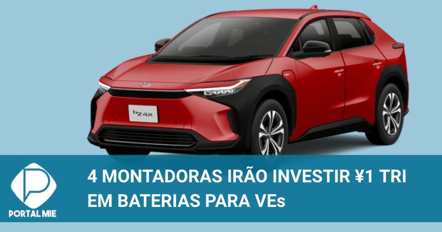 Quatro montadoras japonesas – Toyota, Nissan, Subaru e Mazda – bem como fabricantes de baterias, investirão um total de aproximadamente 1 trilhão de ienes até 2028 para produção em massa de baterias para veículos elétricos (VEs).