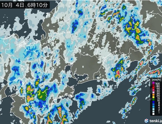 A frente sazonal de outono se estende desde o Mar da China Oriental, passando pelo oeste do Japão até o leste. Por influência dessa frente chuvosa e do sistema de baixa pressão na região, a queda de chuva muito forte poderá gerar alerta tanto na região Kinki quanto em Tokai.