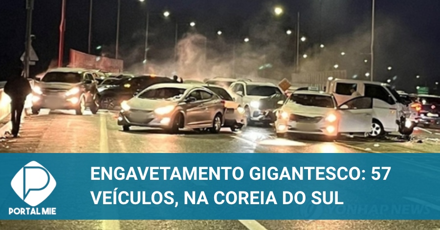 Onze pessoas ficaram feridas na quarta-feira (27) por causa do engavetamento envolvendo 53 veículos, com colisões sequenciais, em uma rodovia na cidade oriental de Wonju, na Coreia do Sul, em meio à neve pesada, disseram as autoridades.