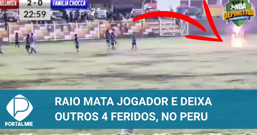 Um impactante raio cai no campo de futebol, matando instantaneamente um dos jogadores e deixando outros 4 feridos.