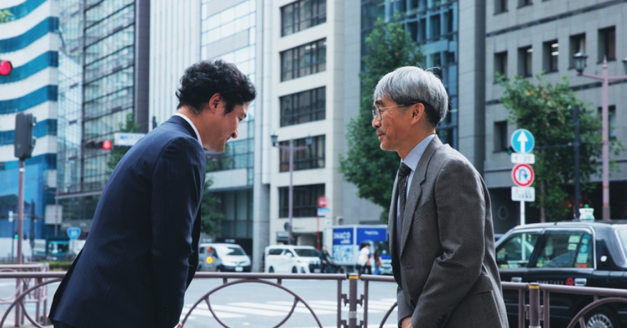 Um assalariado fazendo ‘ojigi’ para seu interlocutor (PM)