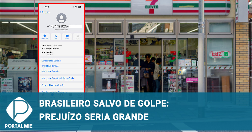Logo a polícia chegou e um dos policiais, ao ver o número que estava no celular do brasileiro que iniciava por ‘+1(844)’ logo disse: “Desligue o telefone. Isso é um golpe. Esse número é do exterior e não pode ser rastreado.”