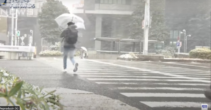 Vento gelado e neve em frente à estação da Nagoia (ANN)
